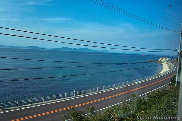 由高知經松山到道後溫泉在查時刻表時總覺得好漫長的路段啊! 再次感嘆四國交通大不易。根據旅遊資料與在blog 爬文的結果,大多人選擇的是高速巴士(2h30 車資約 3500 yen) 時間花費上會較火車(含轉車約4h) 來的少。BUT 我實在不想浪費我手上的 JR火車票, 既是連續7天的車票就算不用日期照算,那豈不虧大了,也有損我自稱"火車旅遊達人" 的誇號!! 於是無論如何都得說服自己與家人火車時間班次好掌控、座位較舒適連想上廁所都方便,另外巴士一定像台灣的高速高公路一樣塞在路車無法移動也無法預估正確時間,ㄟ! 就這樣的像催眠般的讓一家人無怨言的心甘情願搭火車棄巴士到愛媛線松山去了。 事實上坐火車旅遊窗外一幕幕景致向來讓遊客目不暇己,沿瀨戶內海而行的鐵道線錯過這次下次不知待何日?