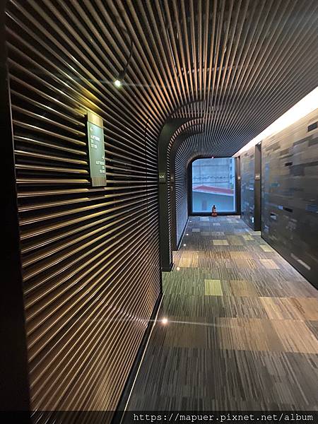 飯店整體設計走時尚的潮風,房間數量不多,據說每層樓的房間 Layout 與擺設到掛畫皆有所不同 殘念!無法安排個 Hotel Inspection) ,單看這走廊圓弧型線條彷彿走在時光廊頗有設計感