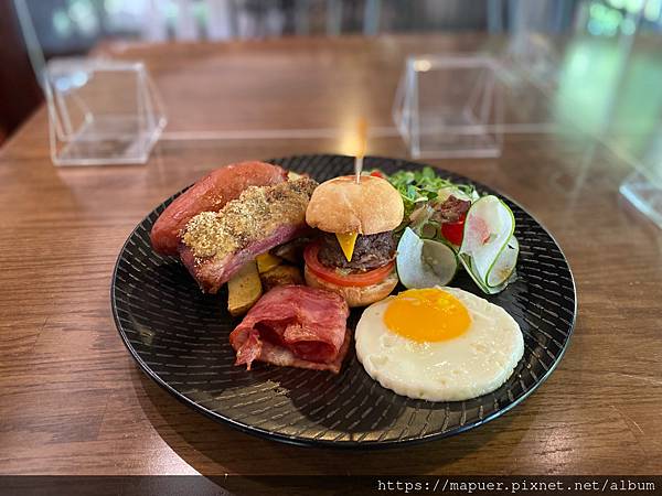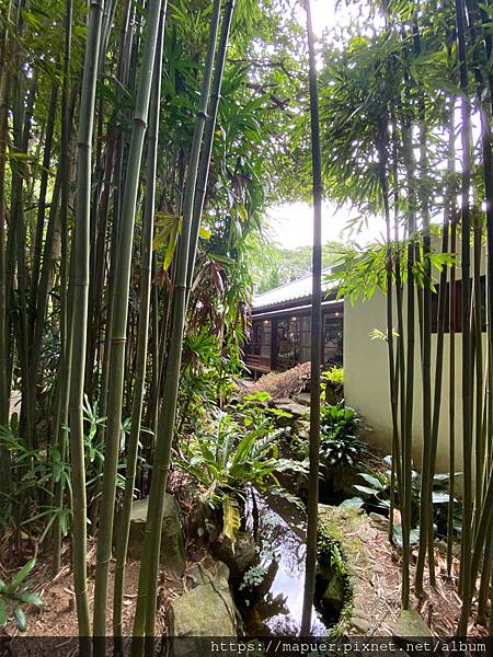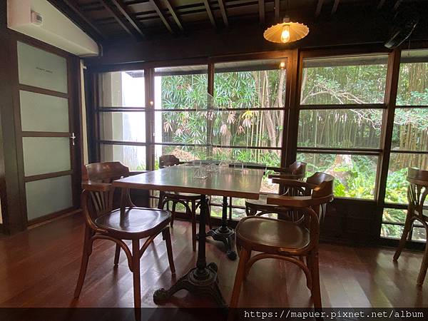 走路運動後,折回公車總站搭車到文化大學站下車,下車過個馬路就到豆遛森林囉, 來這應該是第四次了吧,終於如預期座到靠窗的位置,終於不用擔心時限,不用怕翻屋頂的聊天聲,而是可以悠遊的看著窗外、拍拍照、聆聽音樂🎵,多美好的早晨啊。常聽網友抱怨「豆遛森林」的餐普通、咖啡也稱不上驚艷,CP值不高…等,這一切端看客倌您何時段、何目的來此的,我是來吃「氛圍」的,所以刻意用平日早餐時段來訪,價格當然仍舊偏高、餐點平平,但在這日式建築、竹林中享用早餐,心中感謝店家,費用值得。