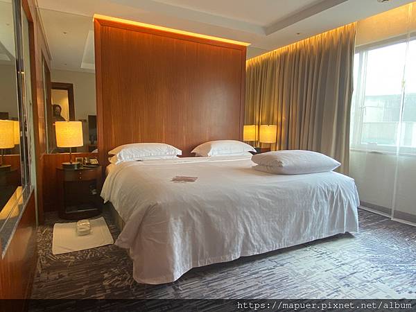 喜來登的雙人床是加大型為220*210 cm, 再請飯店多被一床棉被,雙人睡非常寬敞