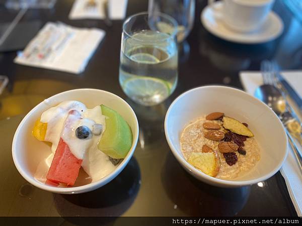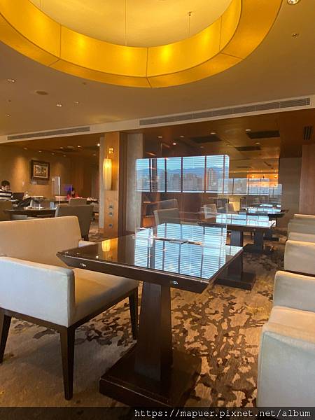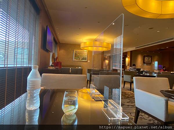 因為疫情有再請趨勢,行政酒廊的桌面上又架設請透明隔板以維護旅客安全