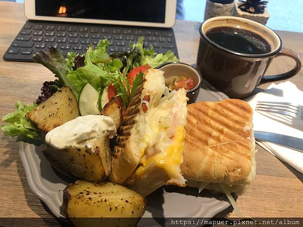 板橋光正街是板橋早午餐、甜點的一級戰區,人車頻繁的小街道、巷弄,走沒幾步就一家餐廳,其中不乏著名的網紅店,如 :L’idee Cafe 樂點咖啡 、TenTenDenDen 甜甜點點(嗯?!我都未嚐過)。畢竟大嬸我早已不是Follow 網紅的年紀,And 這條街有我鐘意的店家-「光權 Kuang’s bistro」,有著歐洲小店(Bistro)的簡璞陳設、好喝的咖啡,拿鐵 奶味、咖啡恰如其分的展現各自的風味,其它花式咖啡、單品咖啡、精釀啤酒選項也多,客人可投其所好選擇。除了咖啡、飲料有水凖的表現,餐食也絲毫不馬虎,應該說更加符合我的口味。光權咖啡的餐食以北歐特色開面三明治、熱壓三明治為主,愈是簡單明瞭的食材,更能嚐出食物的品質好壞,食材、醬汁的組合是影響成品的成敗。重點不論妳點的那款三明治,看到那滿滿的嫩葉生菜、滿足視覺的擺盤,我的心、我的胃已先被收服了。